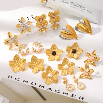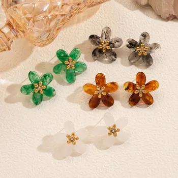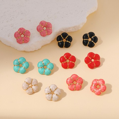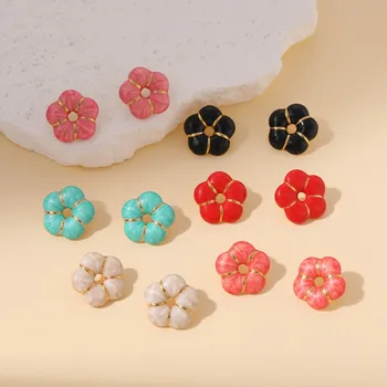 Fashion Stainless Steel Colorful Drip Oil Flower Stud Earrings Jewelry