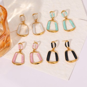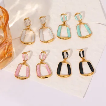 Trendy Stainless Steel White Enamel Geometric Hollow Drop Earrings Jewelry Gift