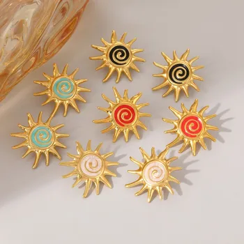 Fashion Stainless Steel Colorful Drip Oil SunFlower Stud Earrings Jewelry
