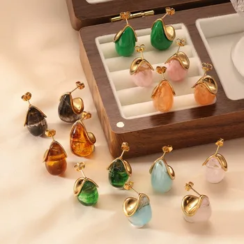 Trendy Stainless Steel Colorful Drip Oil Water Drop Earrings Jewelry Gift