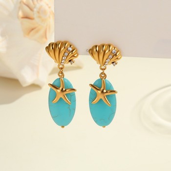 High Quality Stainless Steel Natural Turquoise Crystal Rhinestone Starfish Shell Drop Earring Statement Jewelry