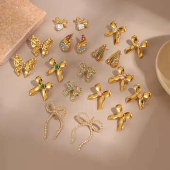 High Quality Stainless Steel Crystal Rhinestone Bow Drop Earring Statement Jewelry