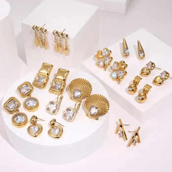 High Quality Stainless Steel Geometry Heart Shape Large Zircon Drop Earring Statement Jewelry