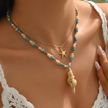 สร้อยคอลูกปัดลูกปัดหินธรรมชาติสีสันสดใสสไตล์โบฮีเมียนสำหรับผู้หญิงเครื่องประดับแฟชั่น