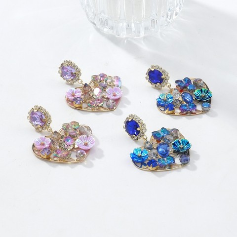 Cổ điển thủy tinh pha lê hạt vỏ hoa thả Bông tai kỳ nghỉ tiệc cưới phụ kiện cô gái Quà Tặng