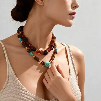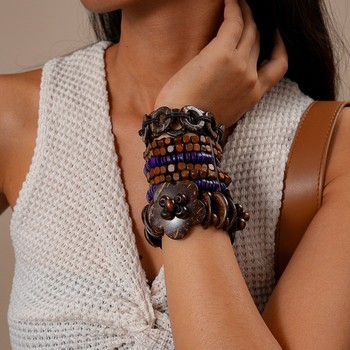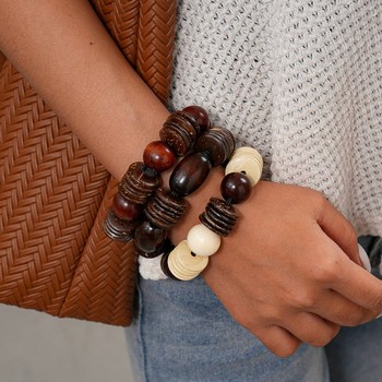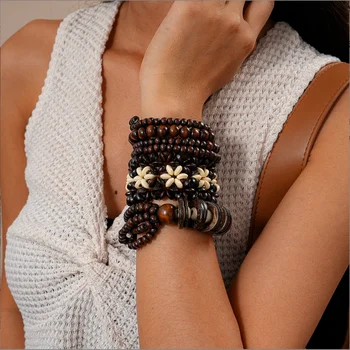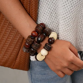 Phóng đại phong cách dân tộc gỗ vỏ dừa Vòng Bead nhiều lớp Vòng đeo tay cho phụ nữ người đàn ông quà tặng đồ trang sức