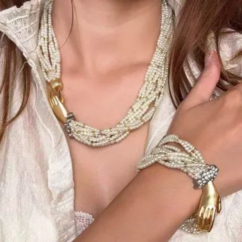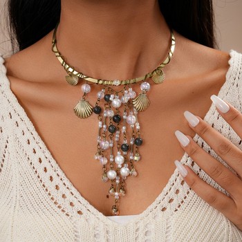 Thời trang handmade Acrylic ngọc trai vòng hạt vỏ tua Vòng cổ cho phụ nữ