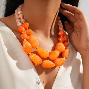 Bohemian thời trang đầy màu sắc Acrylic gỗ đính cườm chuỗi Choker Vòng cổ cho phụ nữ cô gái trang sức phụ kiện